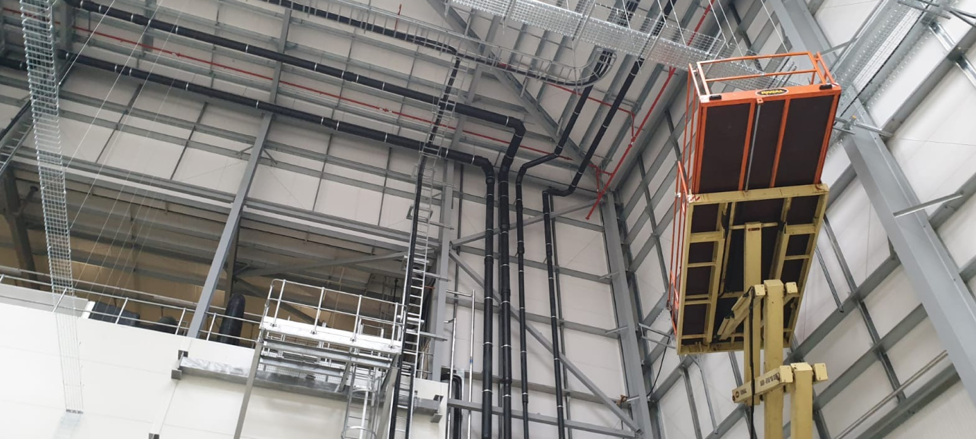 This job was particularly hard as it involved high ceilings and hard to get to pipework. However our expert team overcame all hurdles to provide the thermal insulation finish required and to the existing siphonic drainage system.